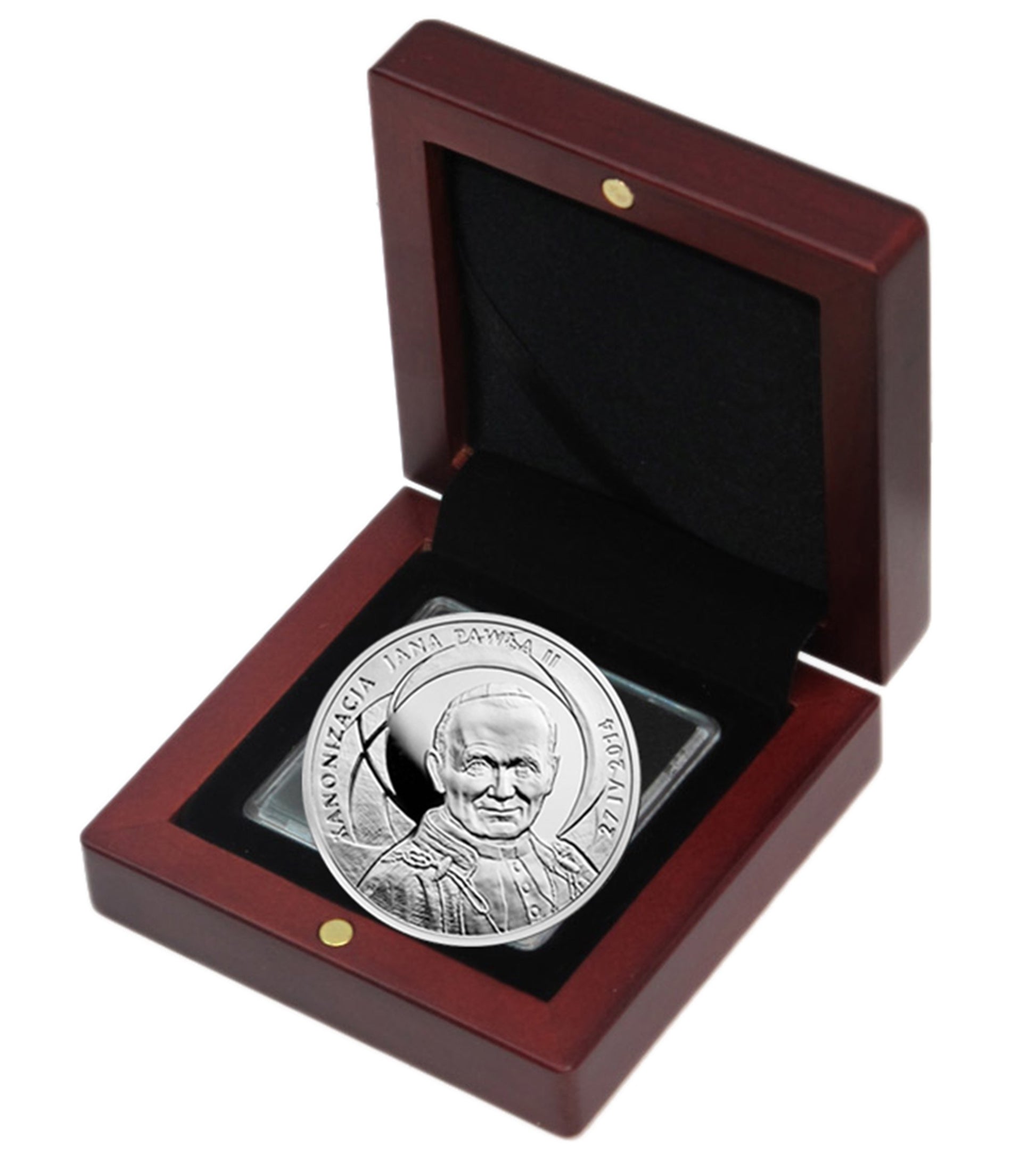 10 zł Kanonizacja Jana Pawła II w mahoniowym etui z grawerem