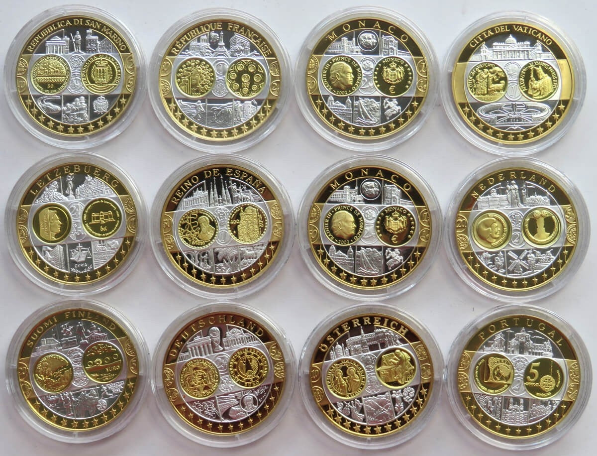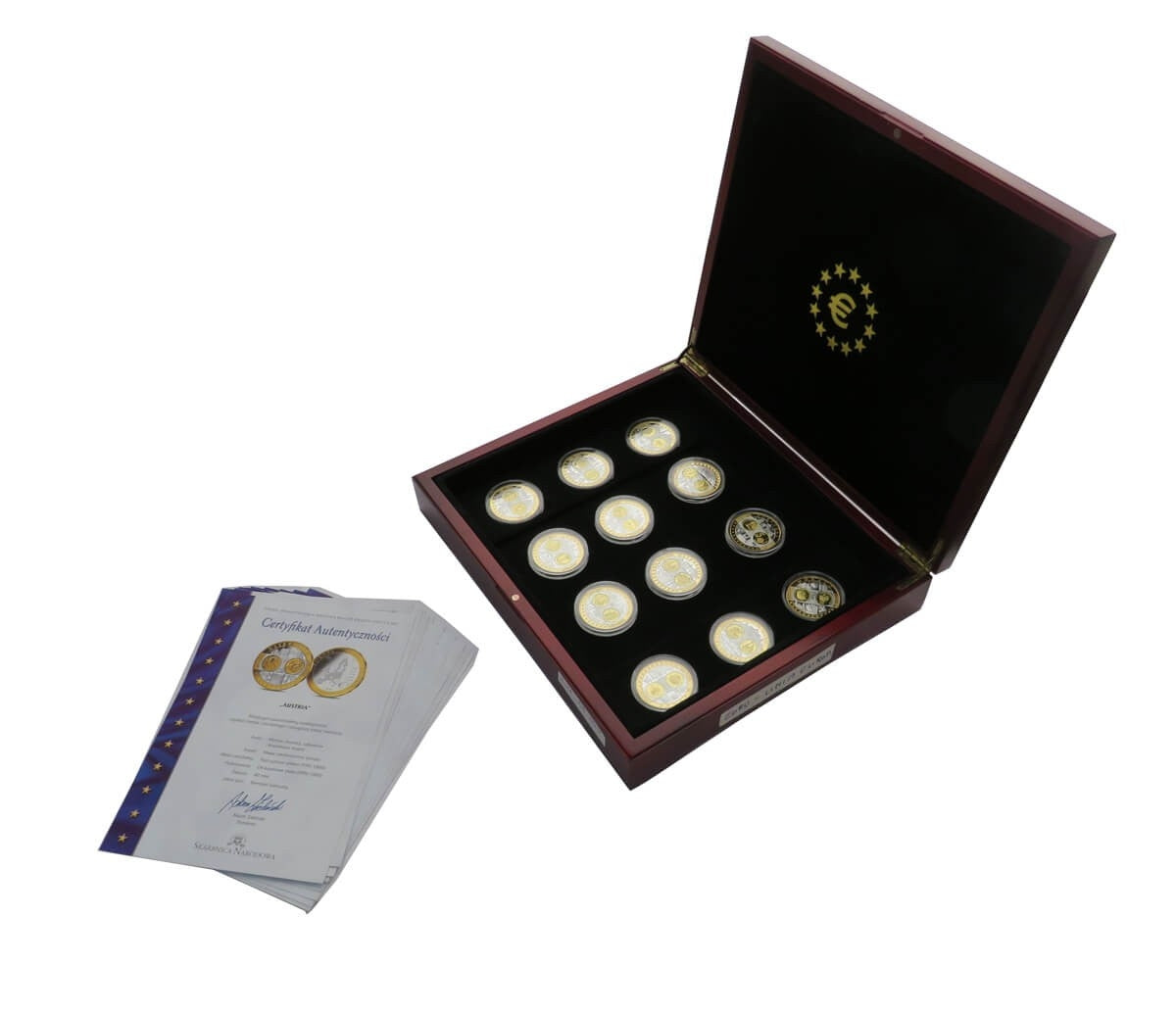 12 Medali wspólna waluta euro, certyfikaty, kaseta