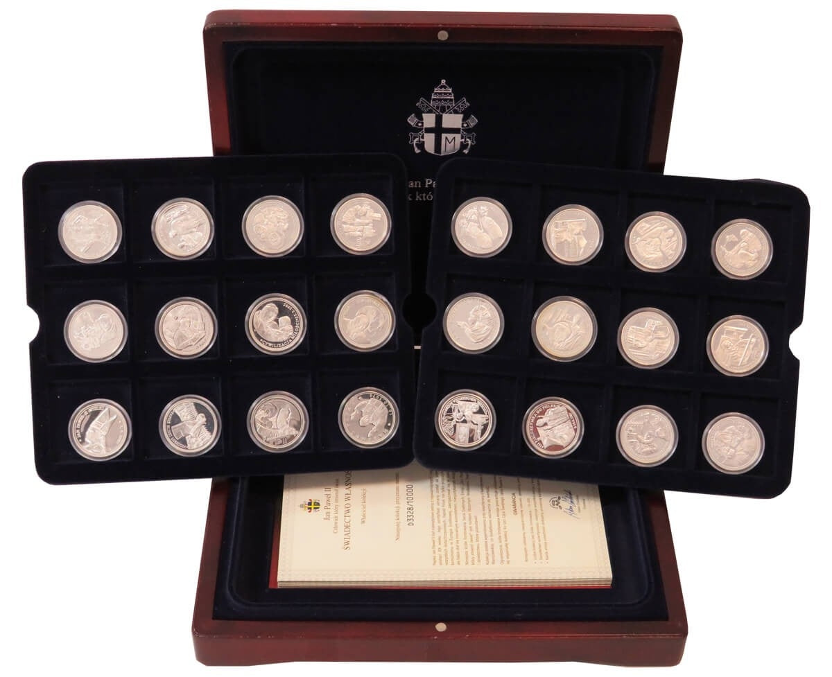 24 x medal Jan Paweł II, srebro, + kaseta + certyfikaty