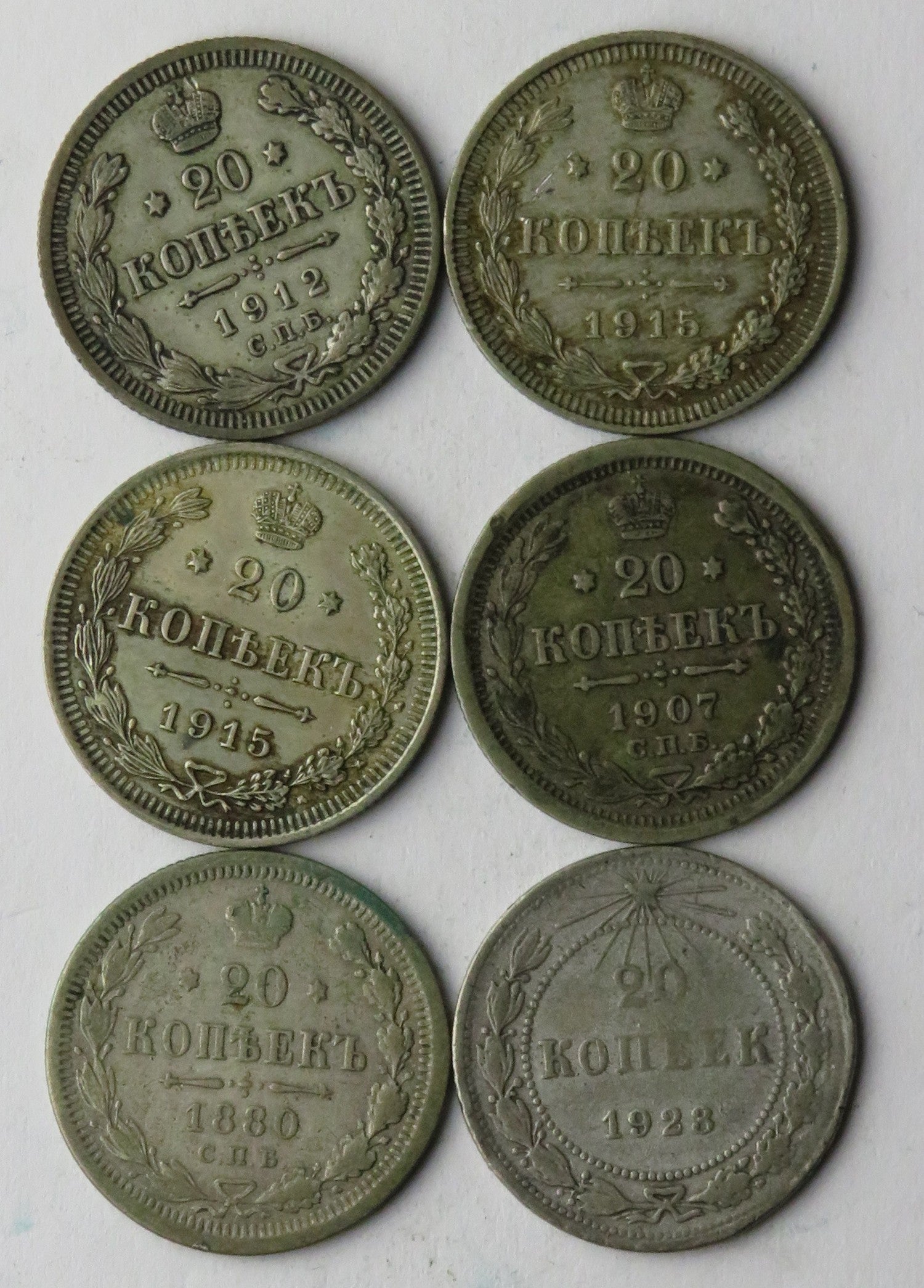 Lot 6 x Rosja 20 kopiejek, srebro, różne roczniki