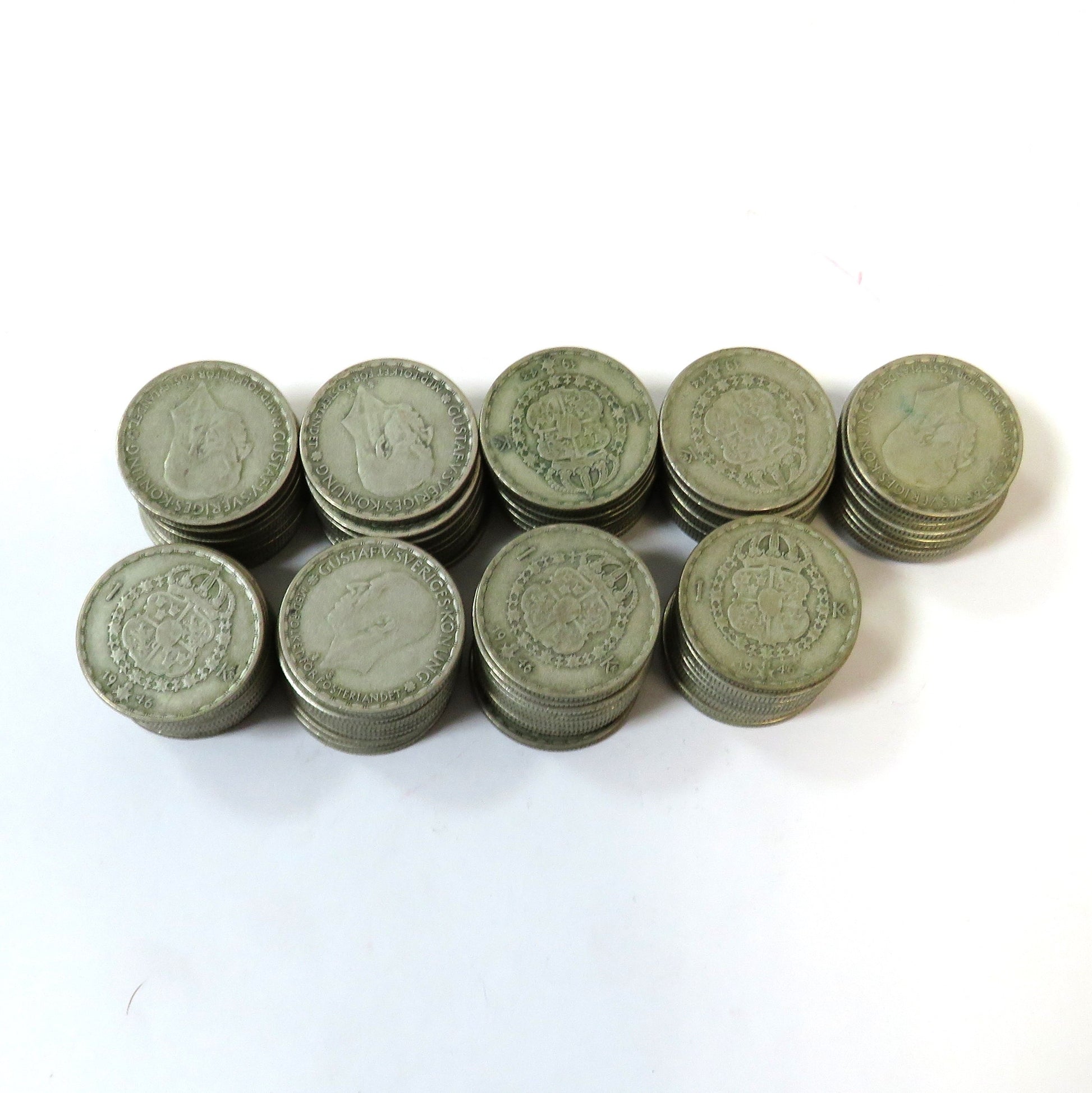Lot: 90 szt. x 1 korona Szwecja, lata 1942-1950, srebro, Ag400