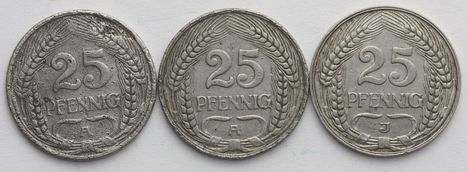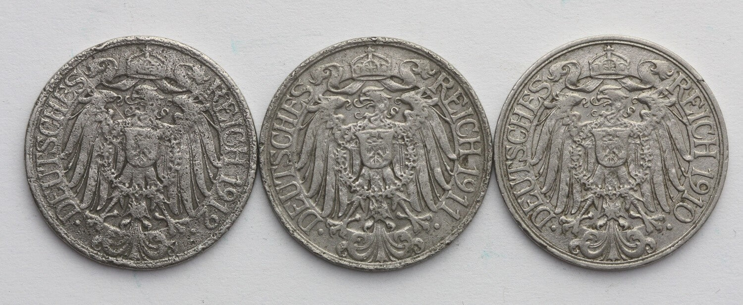 Lot: Niemcy, 3 x 25 fenigów (pfennig), 1910, 1911, 1912