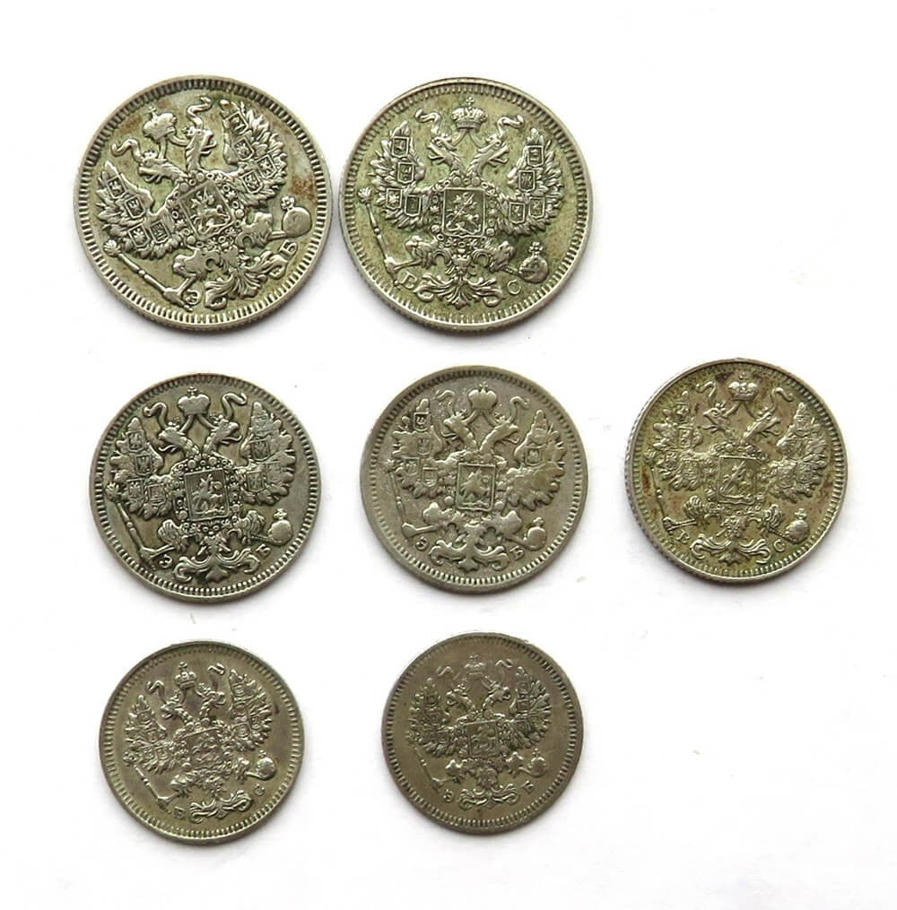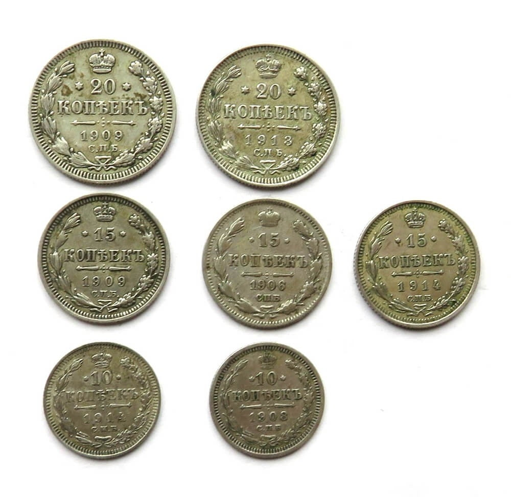 Rosja Zestaw 2 x 20, 3 x 15, 2 x 10 kopiejek - ładnie zachowane