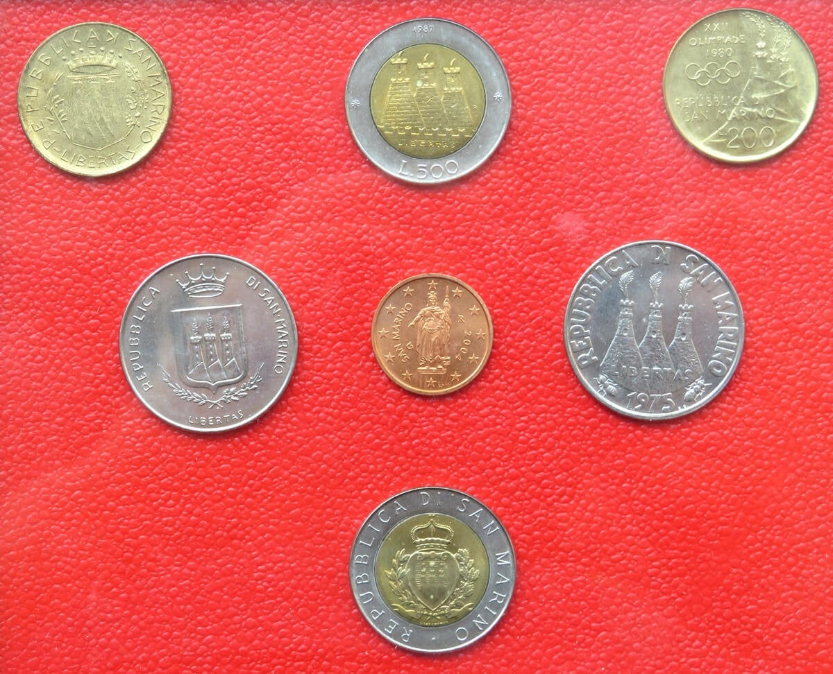 San Marino, 7 monet oprawionych w ramkę, 1975-2005 r.