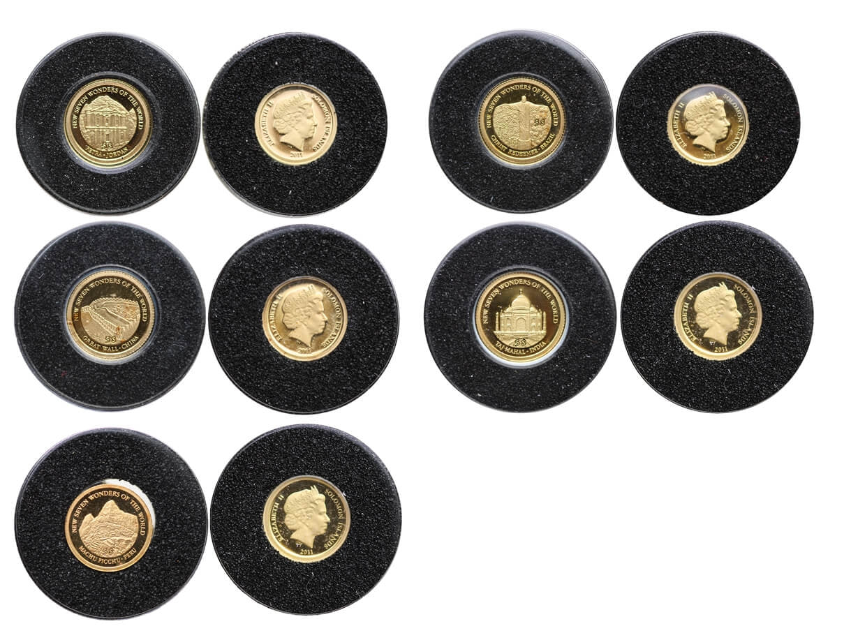 Zestaw 5 złotych monet 5$ z serii Cuda Świata, Au585