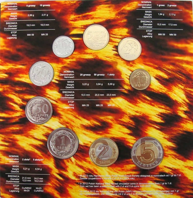 Zestaw polskich monet obiegowych 2012